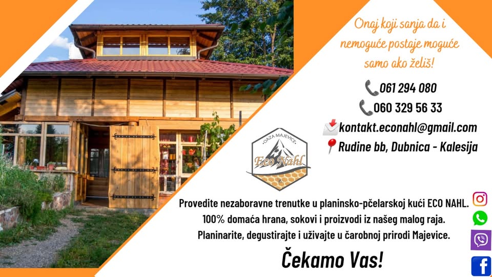 EcoNahl je planinsko-pčelarska kuća u srcu prirode: domaća hrana, sokovi i proizvodi iz našeg kraja, te planinarske ture kroz cijelu godinu.